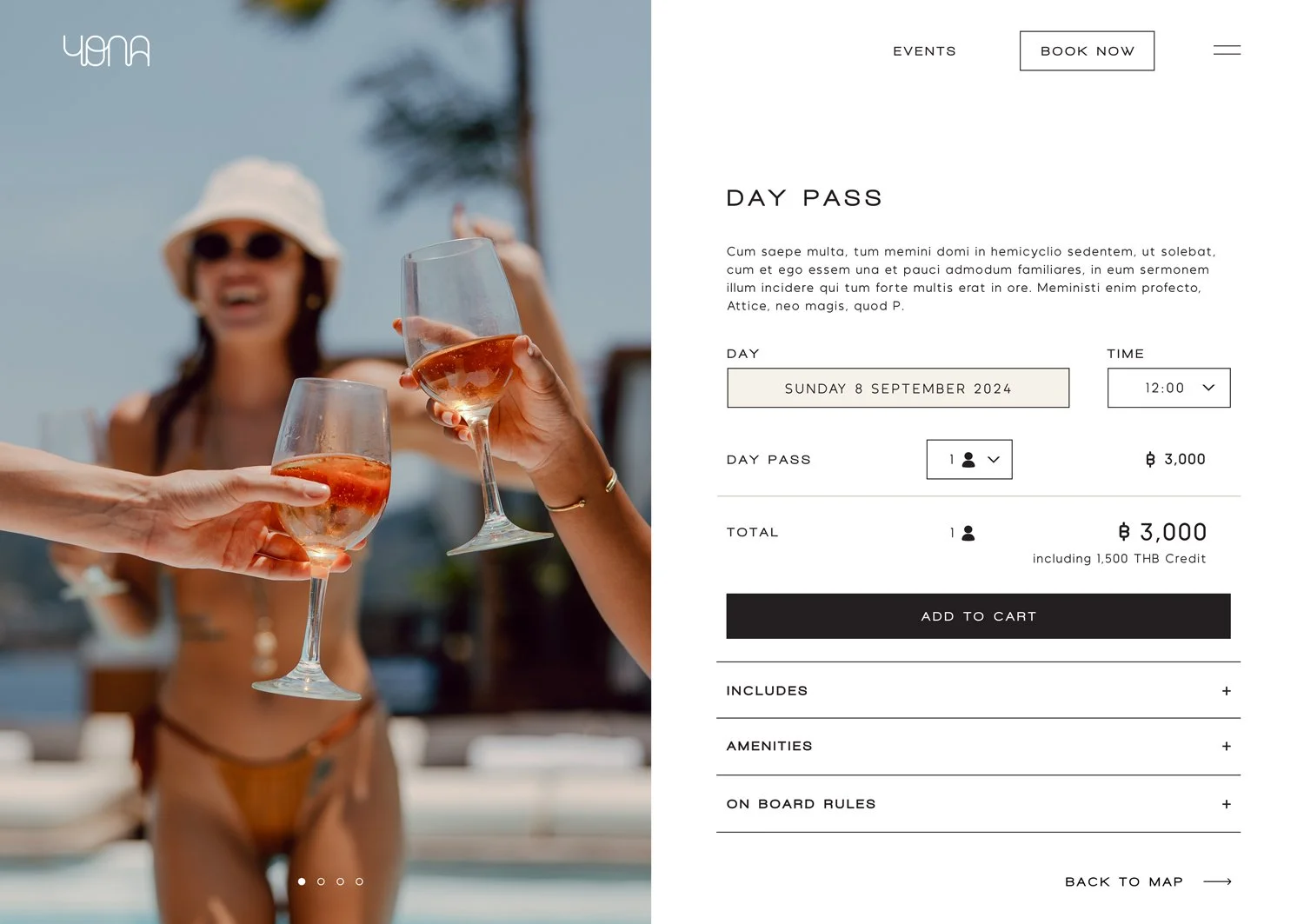 Anchored off the picturesque coast of Phuket, YONA Beach is a one-of-a-kind floating beach club — an oasis of luxury and escape built at the heart of paradise. Designed across multiple decks to welcome up to 500 guests in absolute comfort, it offers a complete range of facilities for an unforgettable experience: cabanas, comfortable pool and sea beds, a bar, a restaurant, and world-class DJs.